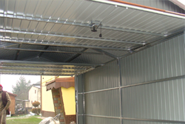 Konstrukcje garażowe wykonane są z kątowników, ceowników i profili stalowych. Pokryte są blachą ocynkowaną ogniowo lub powlekaną, akrylową w szerokiej gamie kolorów. Wykonujemy konstrukcje o wymiarach standardowych 3x5 lub dostosowujemy wymiary do potrzeb klienta. Dokonujemy montażu wykonanej konstrukcji.